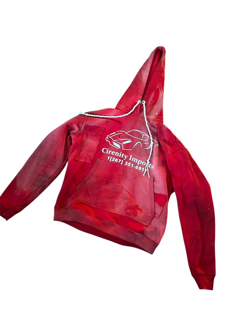 Reworked found hoodie Sun faded from June to September 2 strand twist drawstrings Closed typo business in Philly